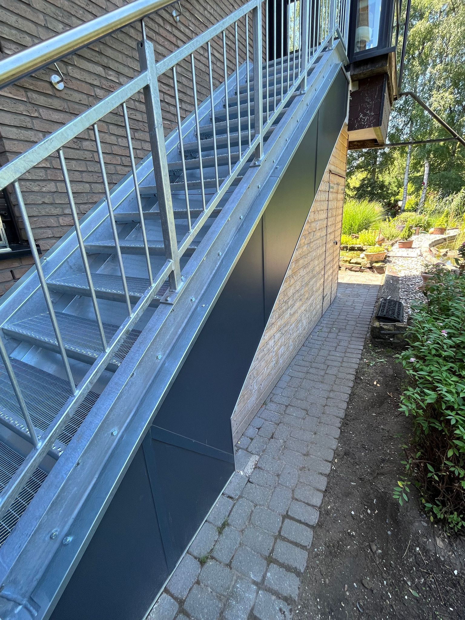 Wir stellen Außentreppen her.Egal, ob aus reinem Edelstahl oder mit Holzverkleidungen, ob Wendel- oder Terrassentreppe.